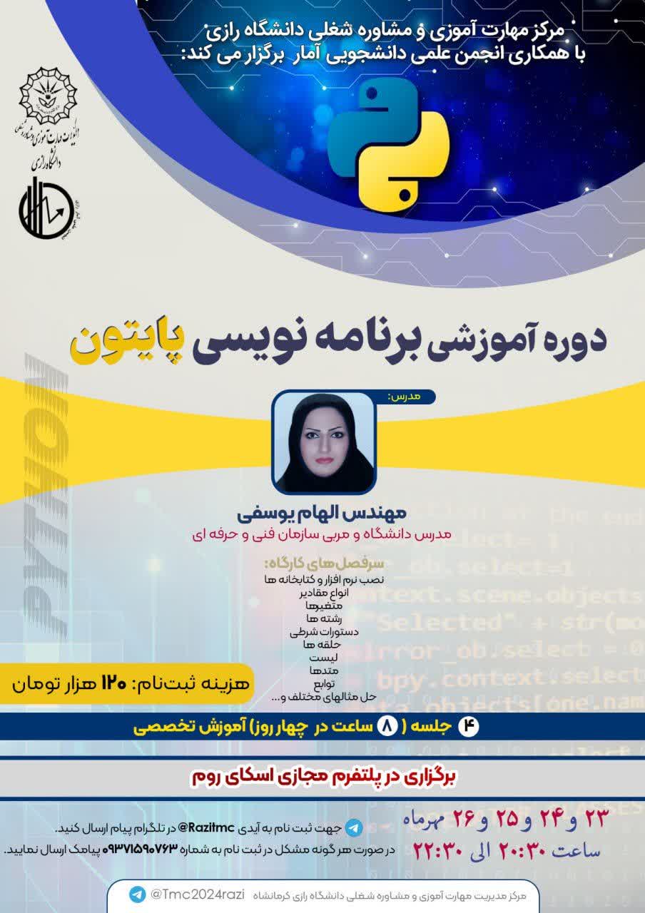 دوره آموزشی برنامه نویسی پایتون - گروه کارآفرینی و ارتباط با صنعت
