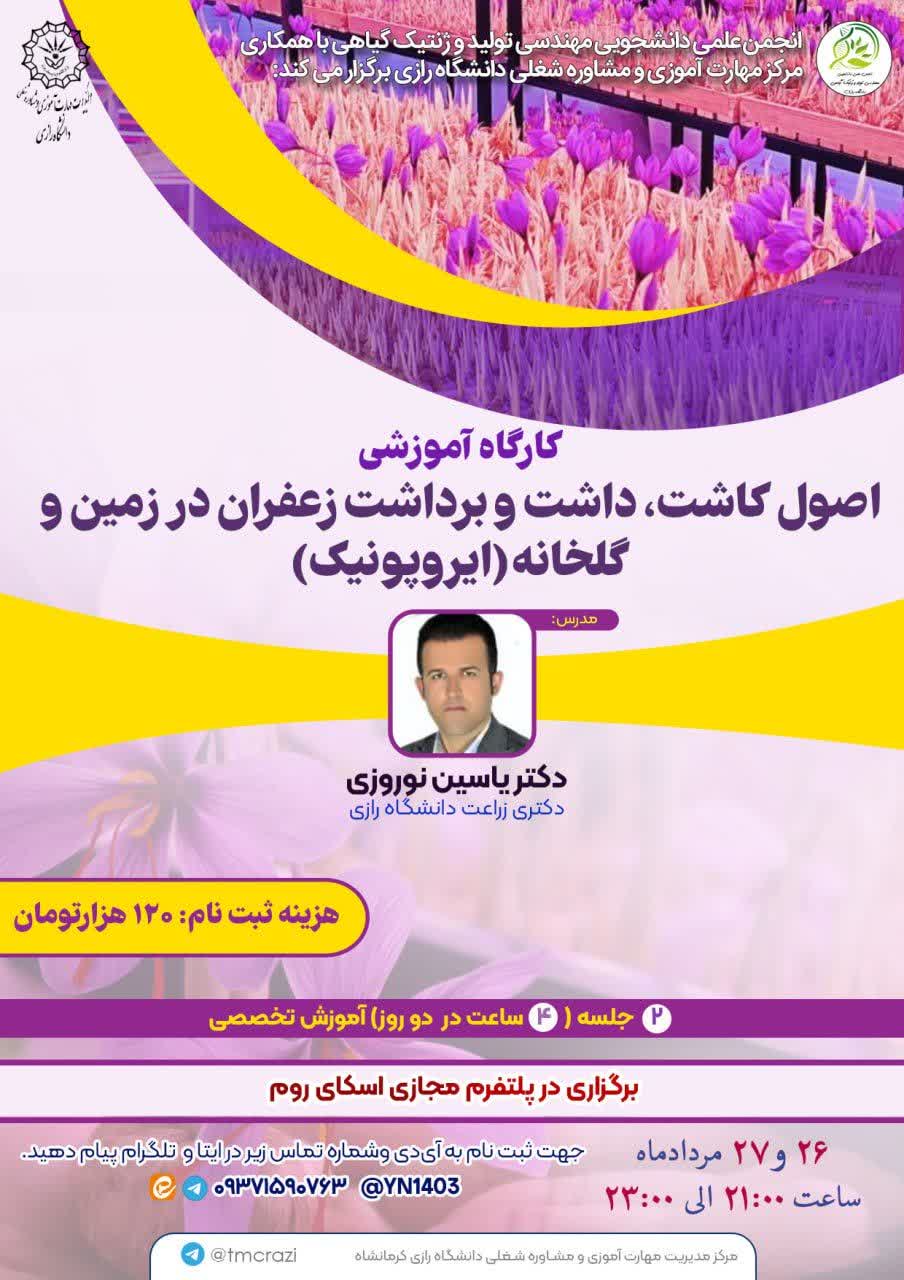کارگاه آموزشی اصول کاشت ، داشت و برداشت زعفران در زمین و گلخانه ( ایروپونینک)