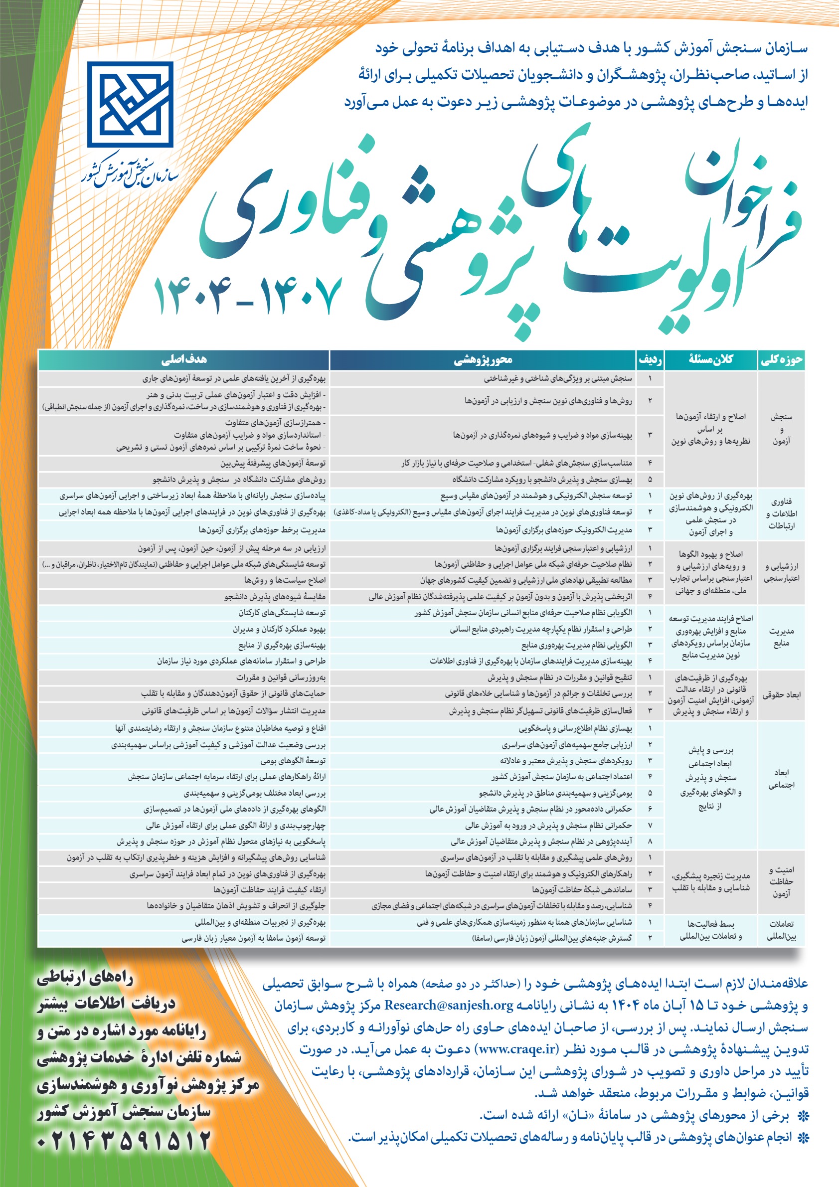 فراخوان اولویت های پژوهشی سازمان سنجش کشور
